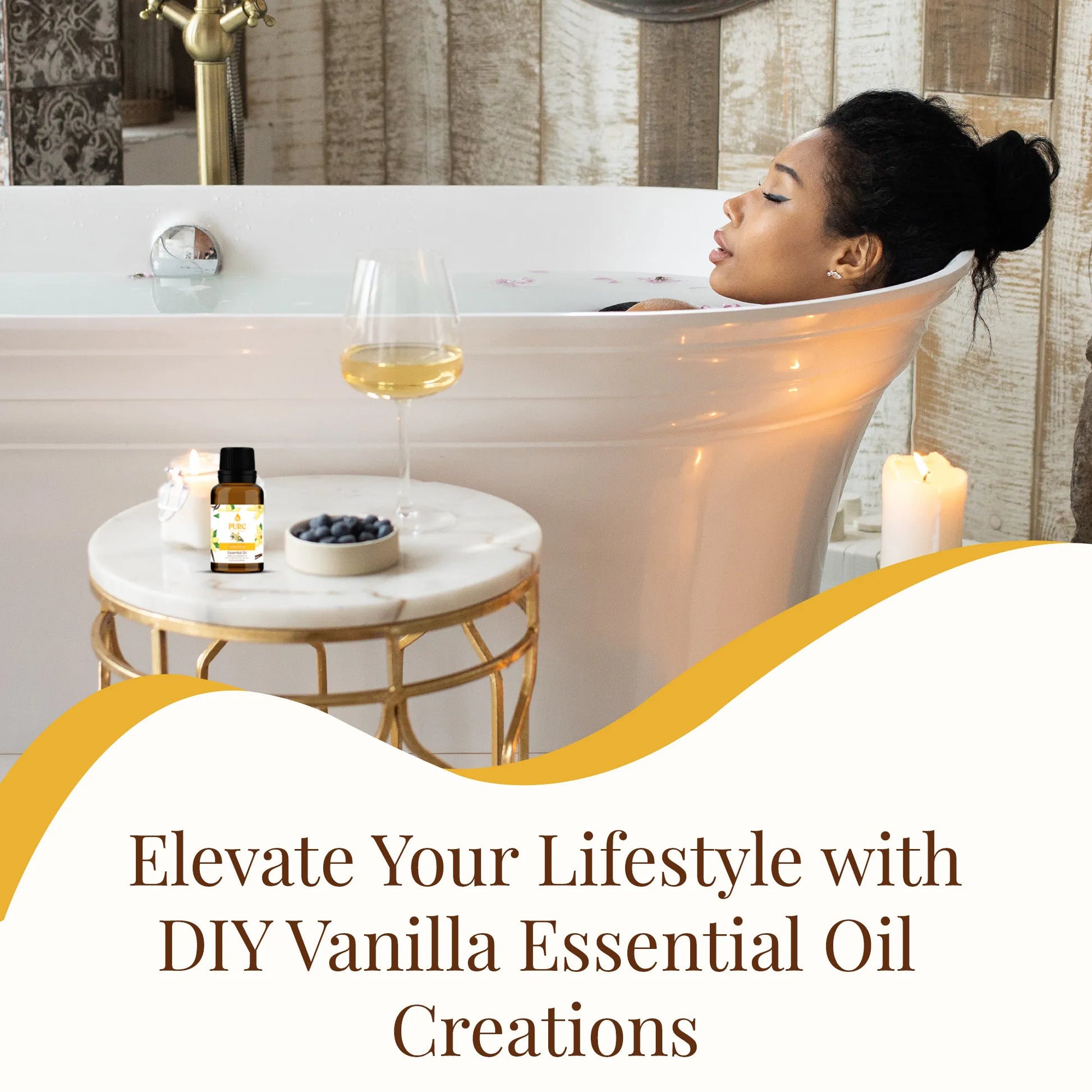 - Soothing Bath: Add 5-10 drops of vanilla oil to a dispersant like Epsom salts or a cup of milk, then add to your bathwater for a luxurious and relaxing soak.