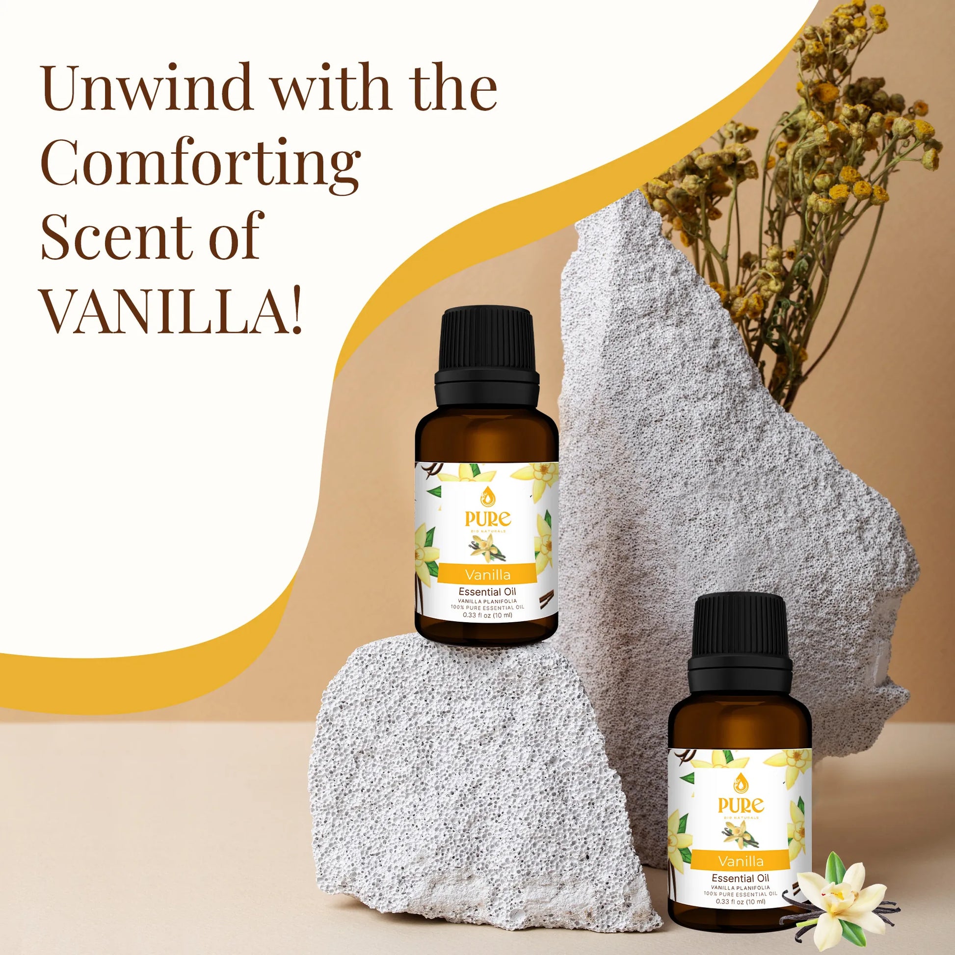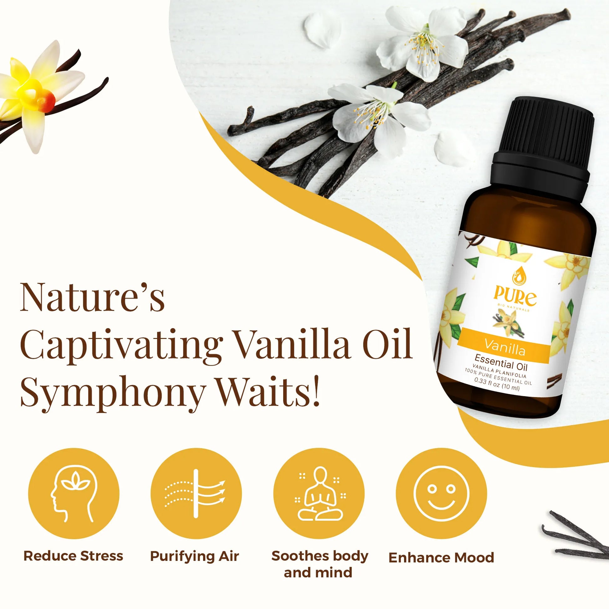 Welcome to the essence of tranquility with Pure Bio Naturals' Pure Vanilla Essential Oil. Sourced from the finest vanilla beans, our Natural Vanilla Essential Oil offers a warm, comforting, and subtly sweet aroma that calms the mind and uplifts the spirit. Beyond its delightful fragrance, this versatile oil holds a myriad of benefits for your well-being.